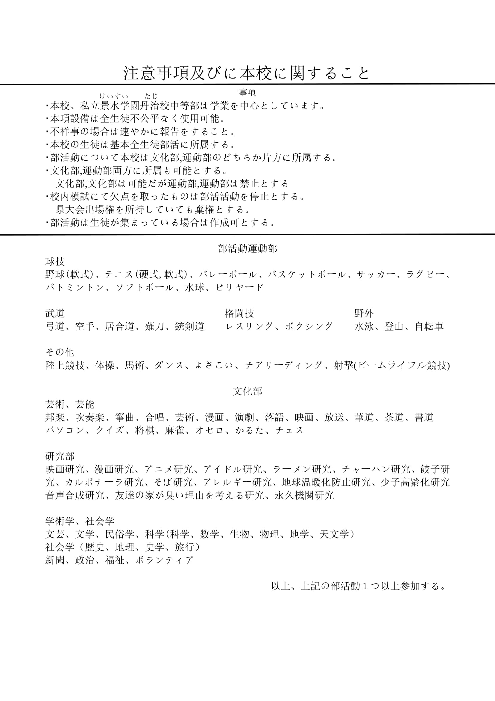 要約するとこの私立景水学園丹治校中等部の注意事項だった
